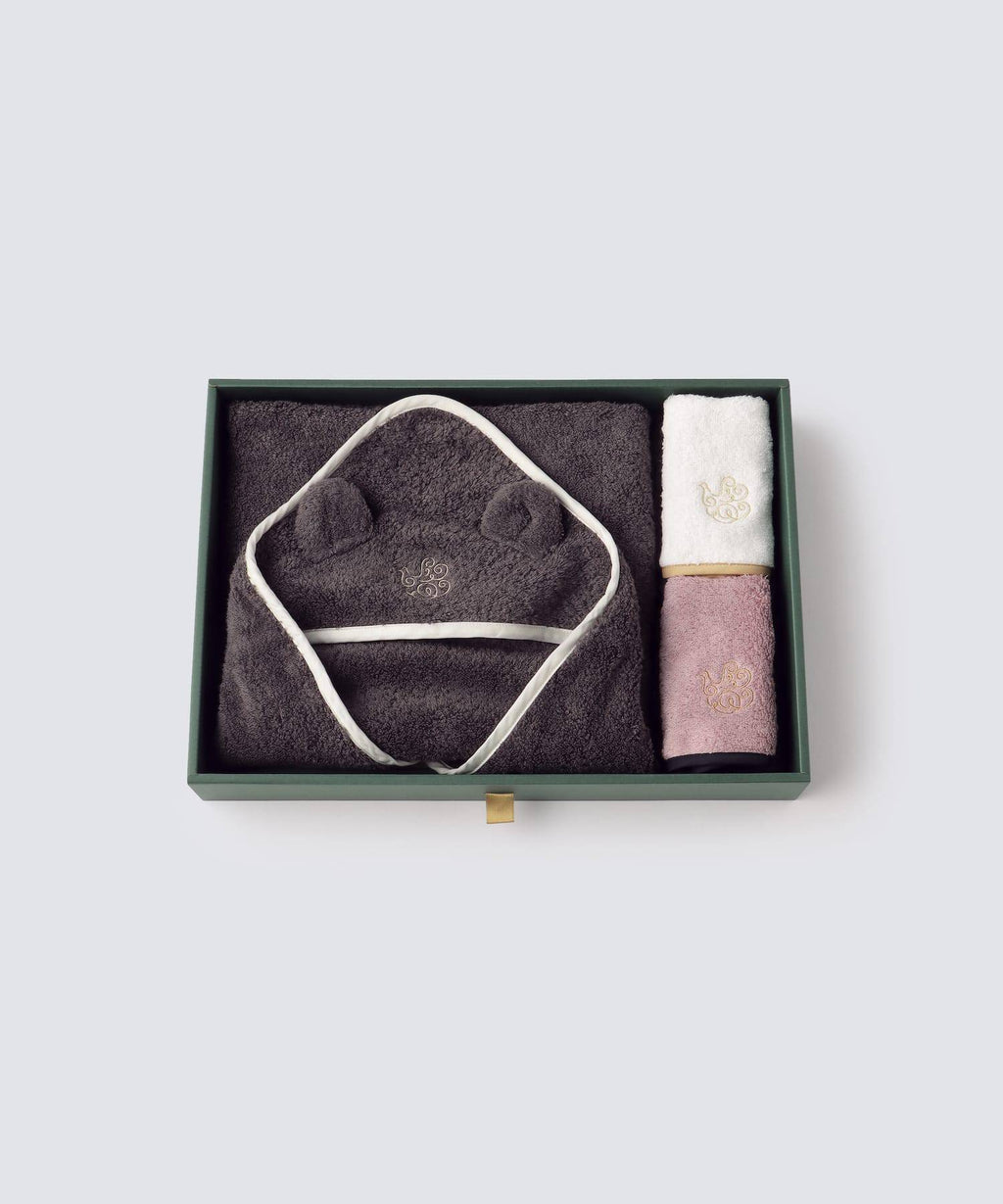 A gift set containing two 33cm x 35cm hand towels and two 33cm x 85cm face towels. It will be delivered in a Foo Tokyo original gift box.