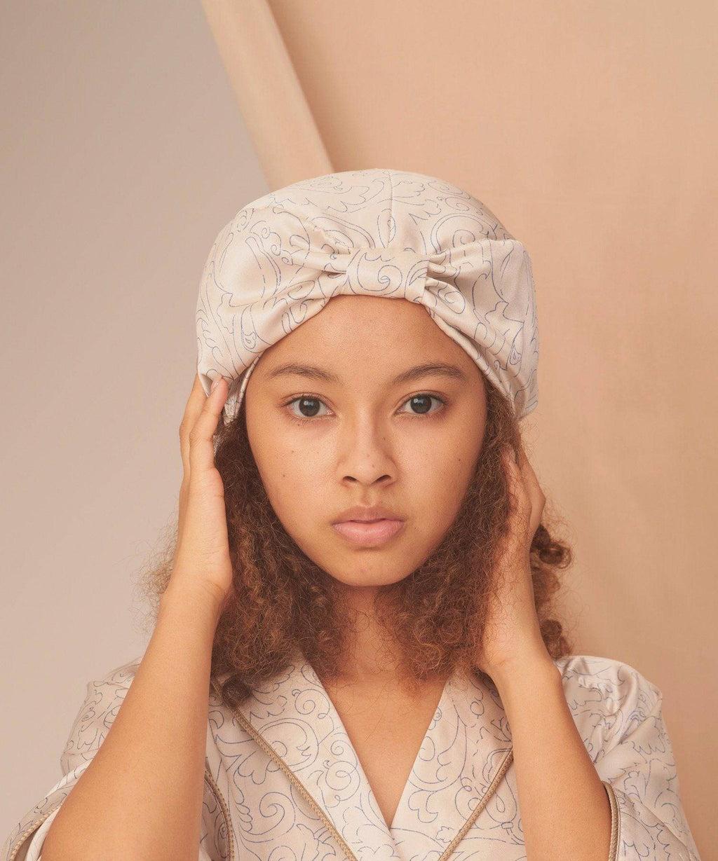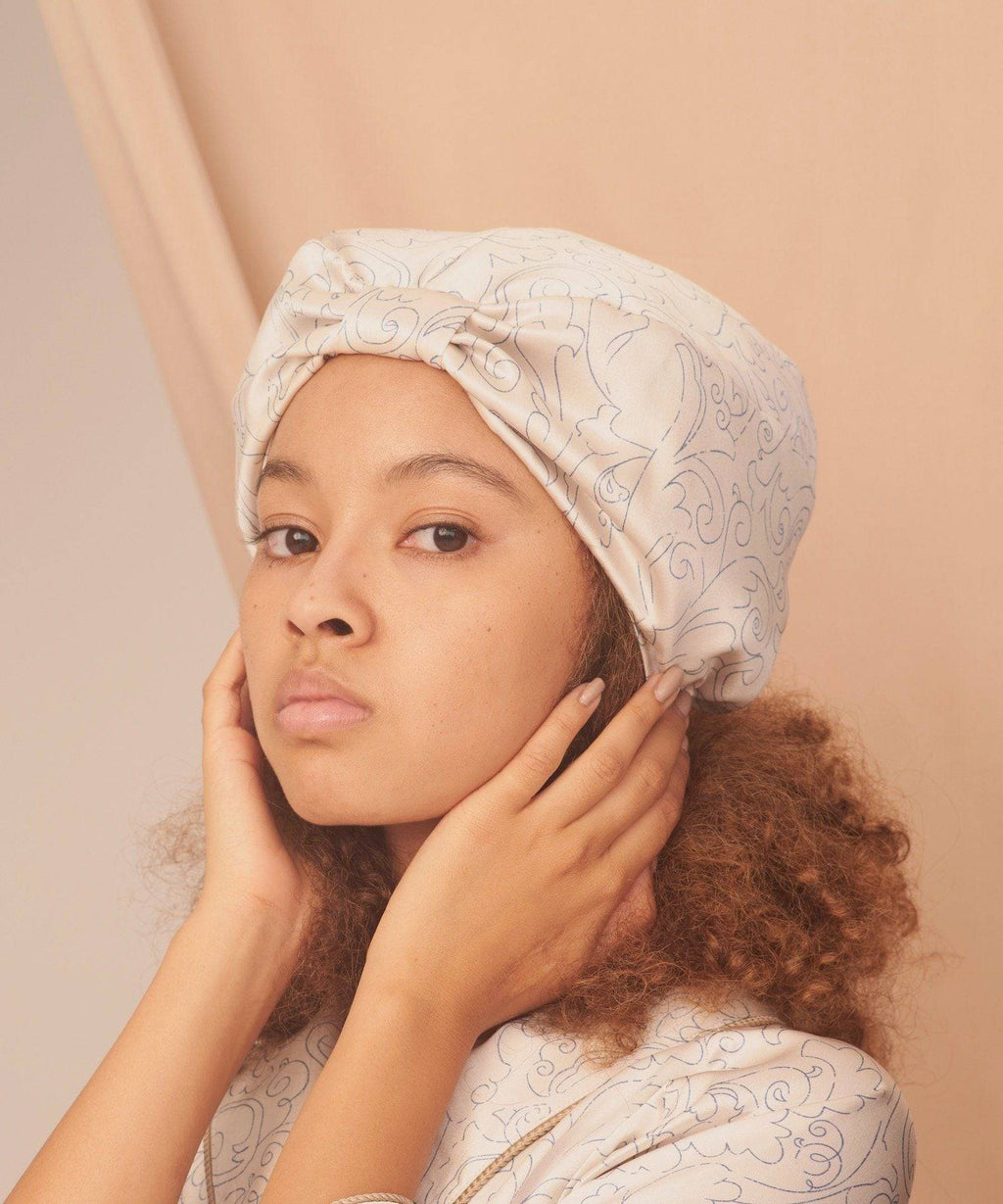 A hair cap that protects your hair while you sleep, using Foo Tokyo's classic silk fabric. Total coordination with pajamas and room wear is also recommended.
