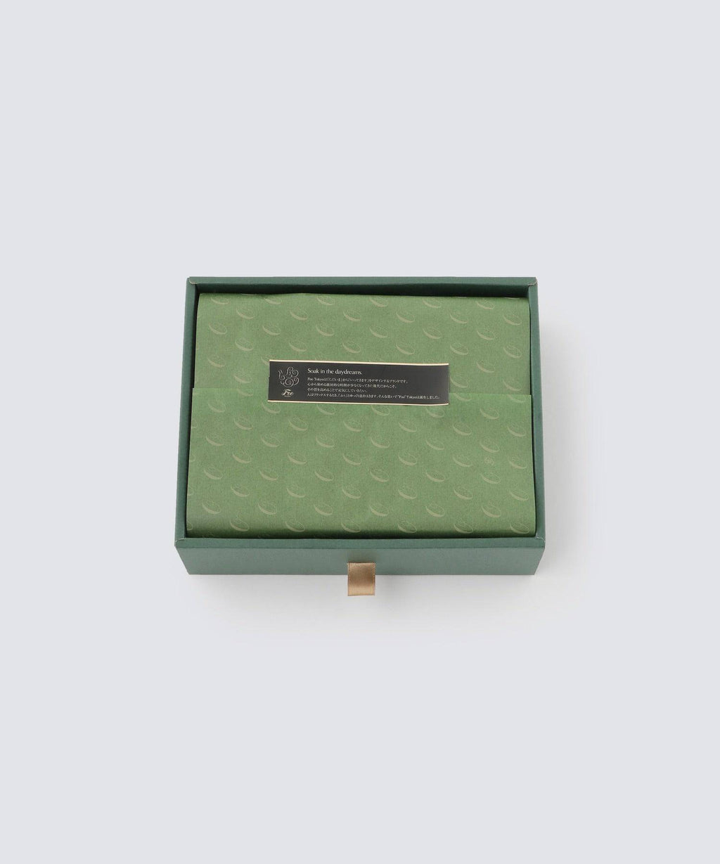 This gift set includes one 33cm x 35cm hand towel, and is delivered in a Foo Tokyo original gift box. The gift box can be customized with or without noshi (gift wrapping paper), or with a ribbon on the towel itself or on the outer box, depending on the purpose. We hope this gift set will bring a peaceful time at home to your loved ones.