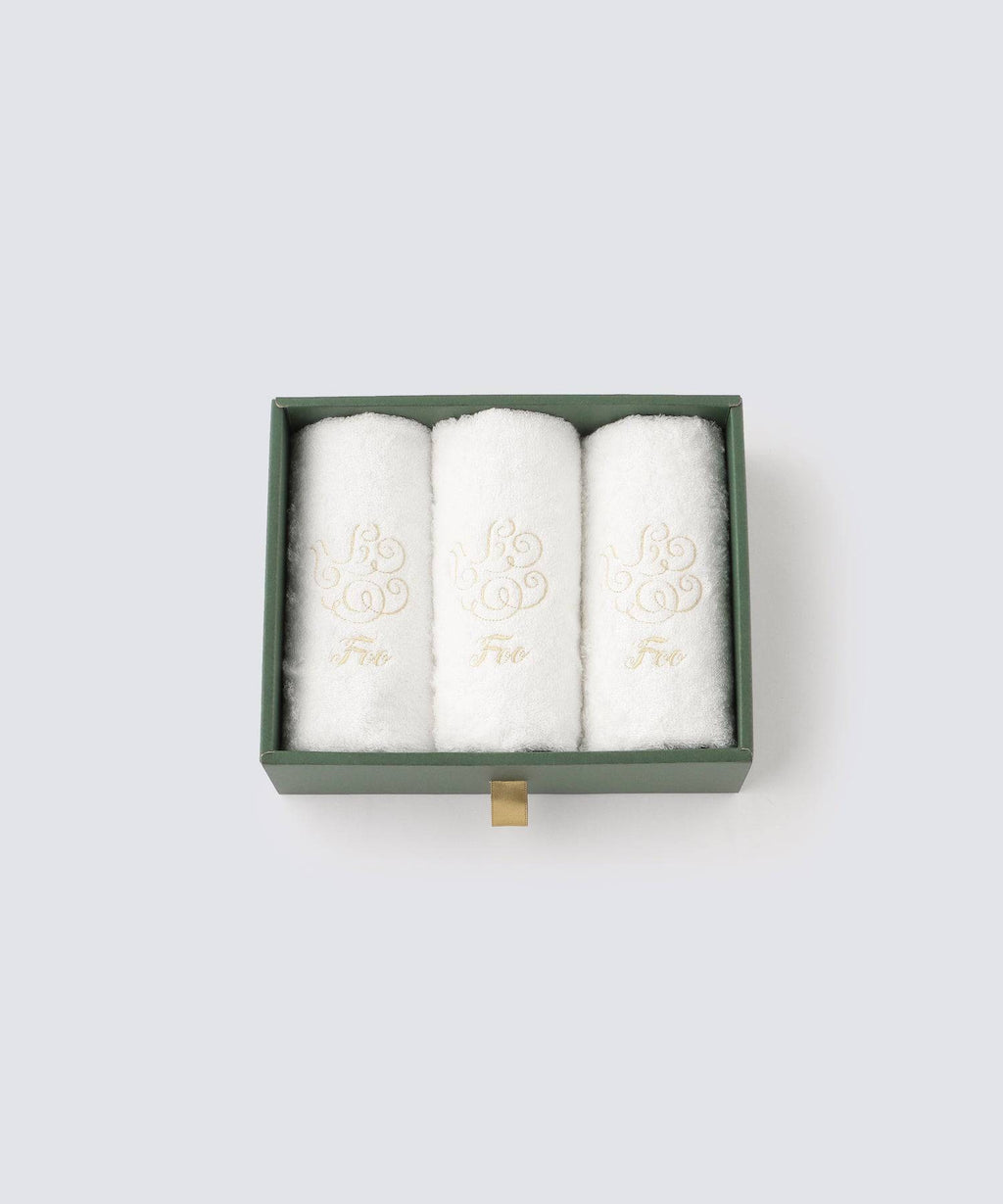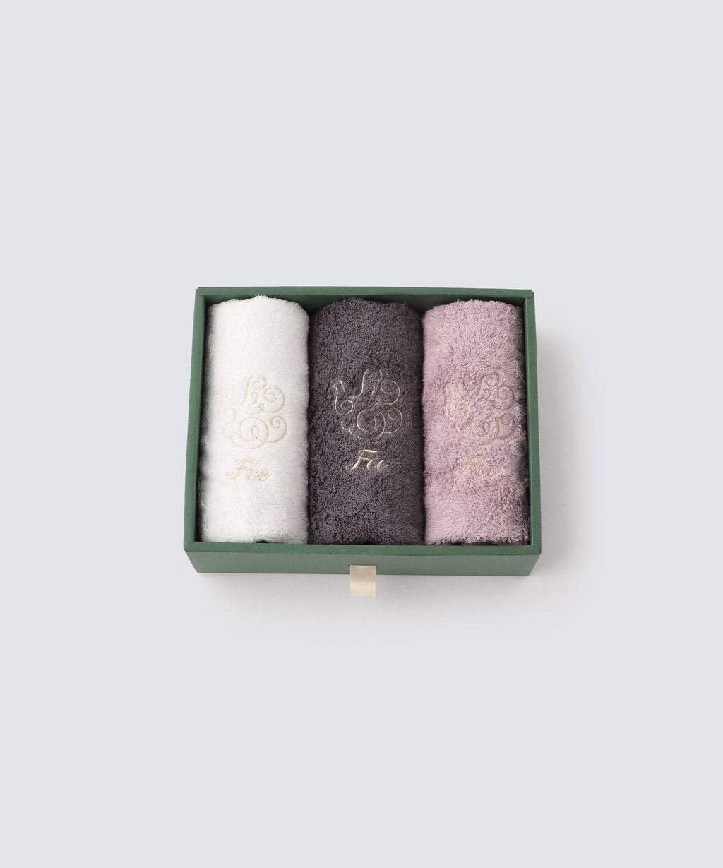 This gift set contains three 33cm x 85cm face towels, and is delivered in a Foo Tokyo original gift box. The box can be customized with or without a ribbon or noshi (gift wrapping paper) depending on the purpose of use & each celebrated occasion.