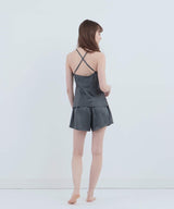 The design is such that it hangs slightly to the left and right when viewed from the front, and a beautiful A silhouette is completed with a camisole and top. You can also wear it as a set according to the season and purpose.