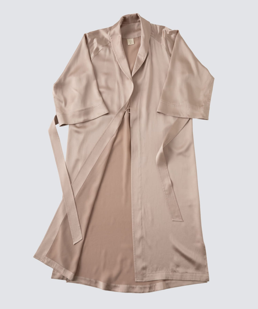 Silk is a special natural fiber that has been loved by people for its "skin beautifying and toning action. Its composition, rich in amino acids, is as close as possible to that of human skin, making it a skin-friendly material that even people with sensitive or atopic skin can wear. Foo Tokyo's silk gowns are made of 100% raw silk, the highest grade of silk available.