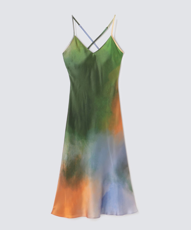 Watercolor Silk Dress Misty Lake