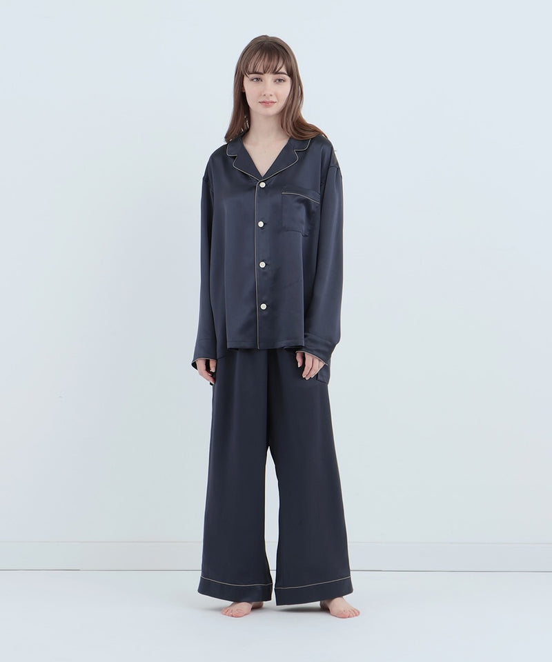 For example, the piping, which tends to play a supporting role in the design, uses a thin and soft material, and has been given attention to detail as an important accent color that complements each fabric color. The buttons are beautifully shiny shell buttons that decorate pajamas like casual jewelry.