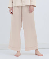 For example, the piping, which tends to play a supporting role in the design, uses a thin and soft material, and has been given attention to detail as an important accent color that complements each fabric color. The buttons are beautifully shiny shell buttons that decorate pajamas like casual jewelry.