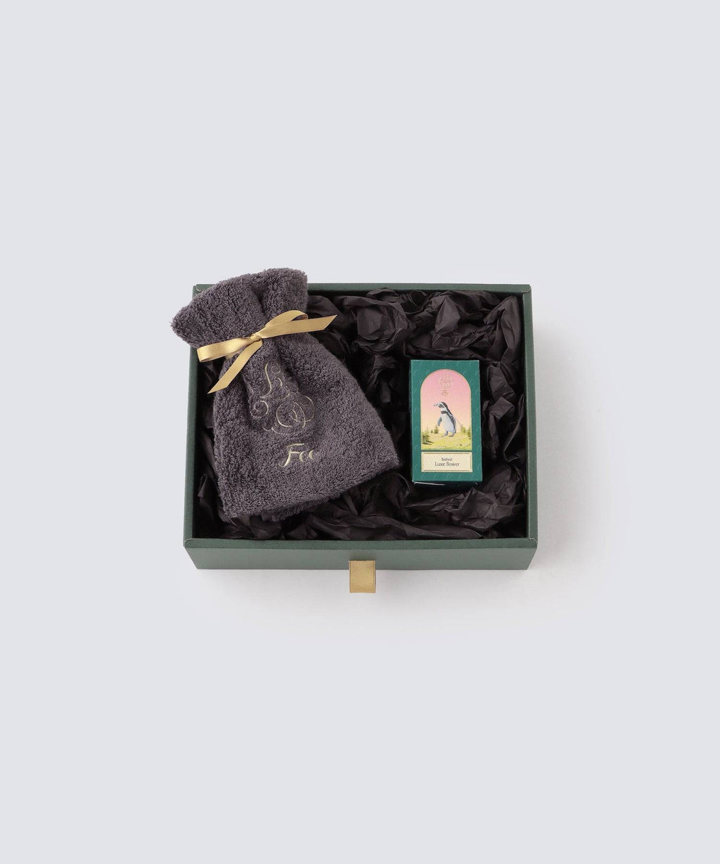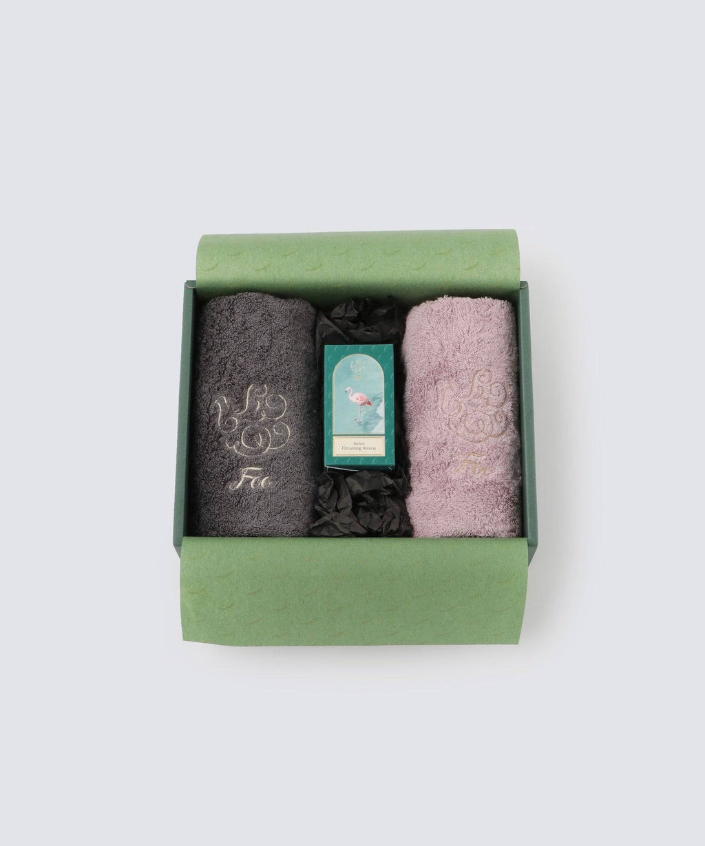 This gift set includes a 33cm x 35cm hand towel and Foo Tokyo bath oil, and is delivered in an original Foo Tokyo gift box. The gift box can be customized with or without a ribbon or Noshi (Traditional Japanese gift wrapping paper), depending on the purpose. We hope this gift set will bring a relaxing time at home to your loved ones.