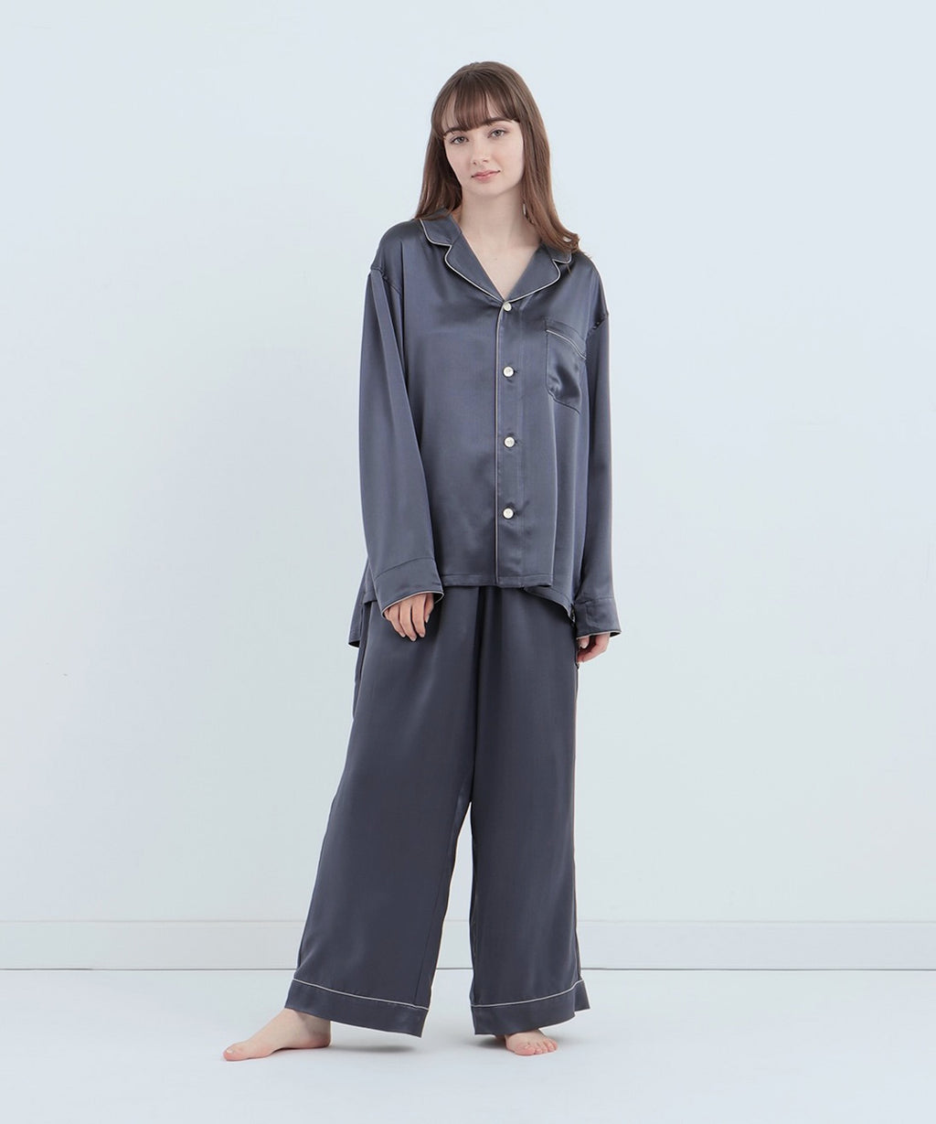 For example, the piping, which tends to play a supporting role in the design, using a thin and soft material, and has been given attention to detail as an important accent color that complements each fabric color. The buttons are beautifully shiny shell buttons that decorate pajamas like casual jewelry.