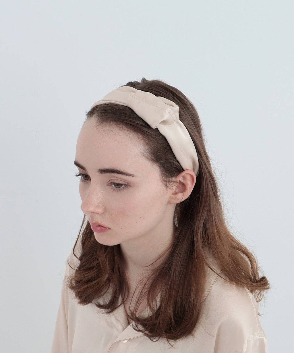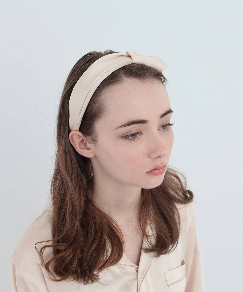A hair band accented with a slightly larger ribbon made from Foo Tokyo's standard silk fabric . Silk is made of protein, and it is a hair-friendly material that is also made of protein.