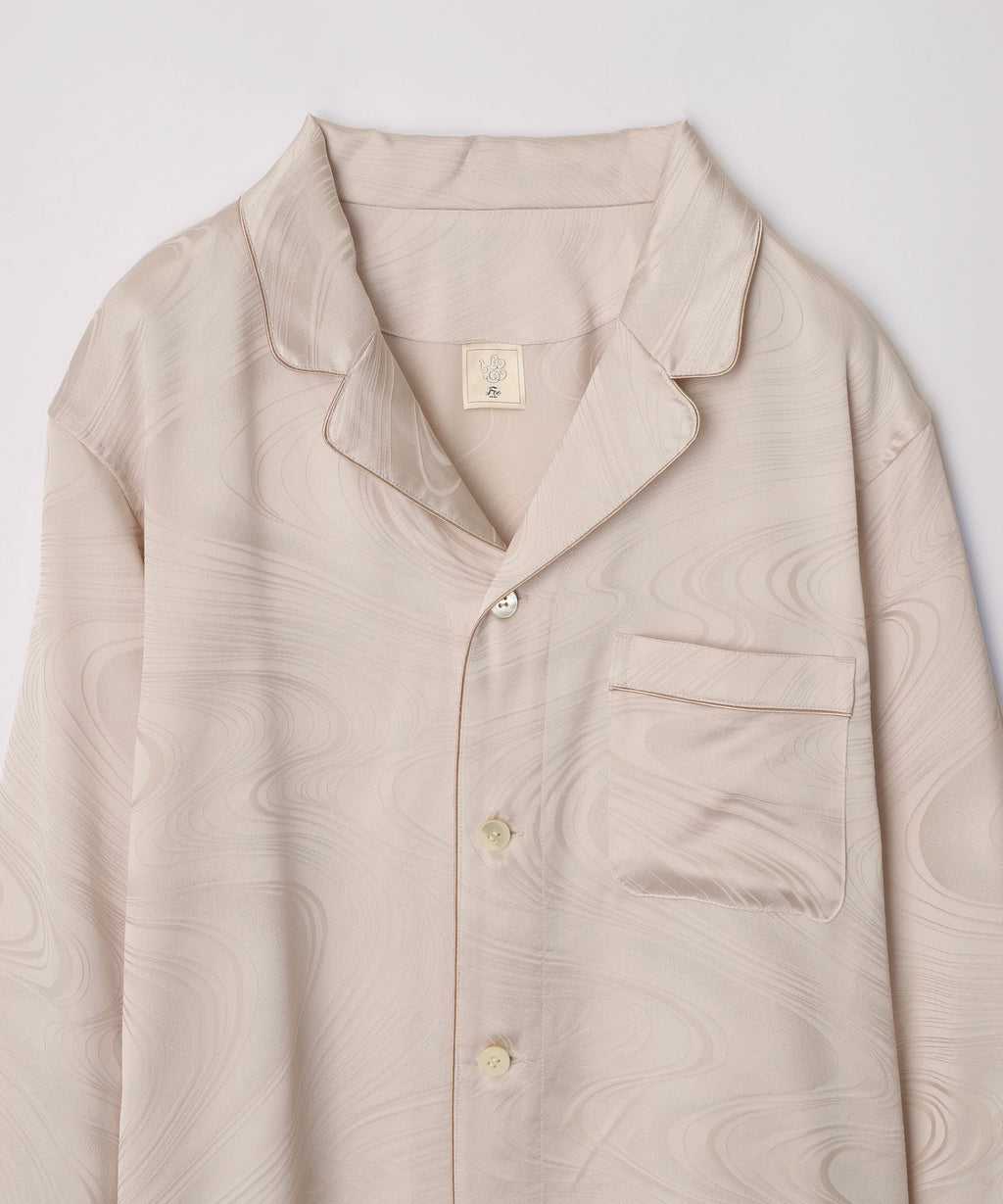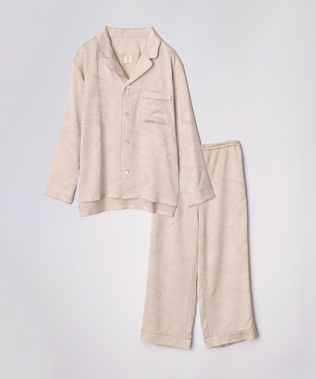 【SET-UP】Silk Jacquard Pajamas Water Pattern Pearl White