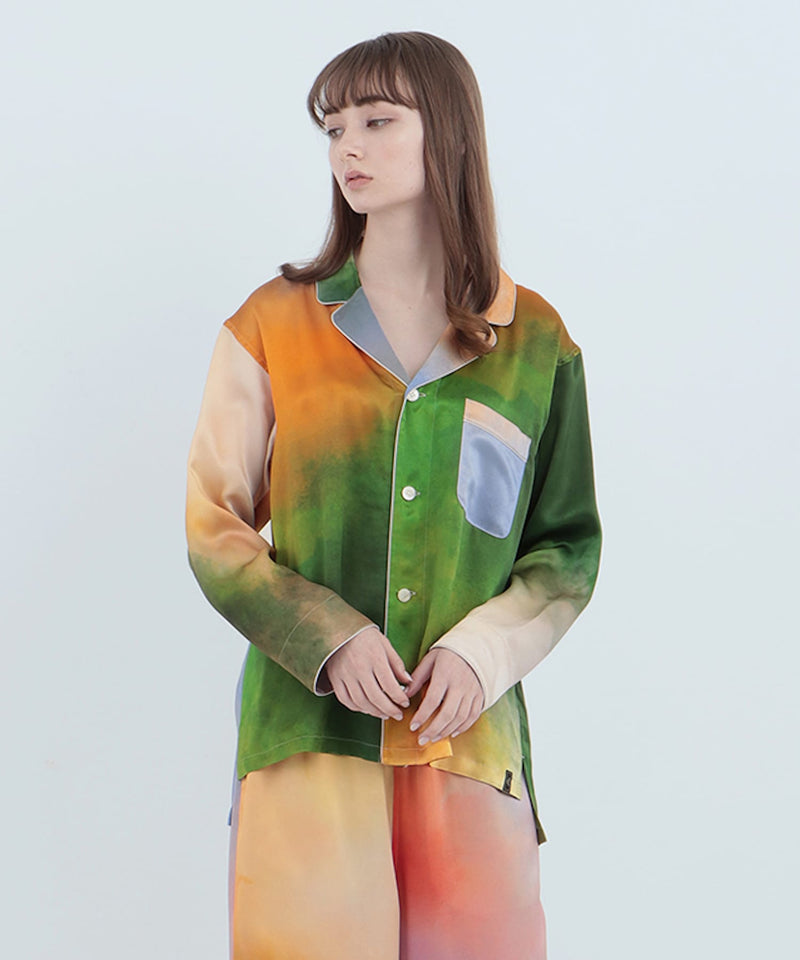 【Tops】Watercolor Silk Pajamas Misty Lakes