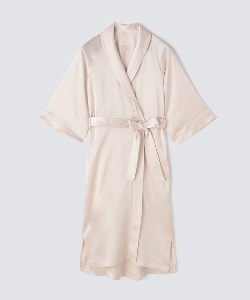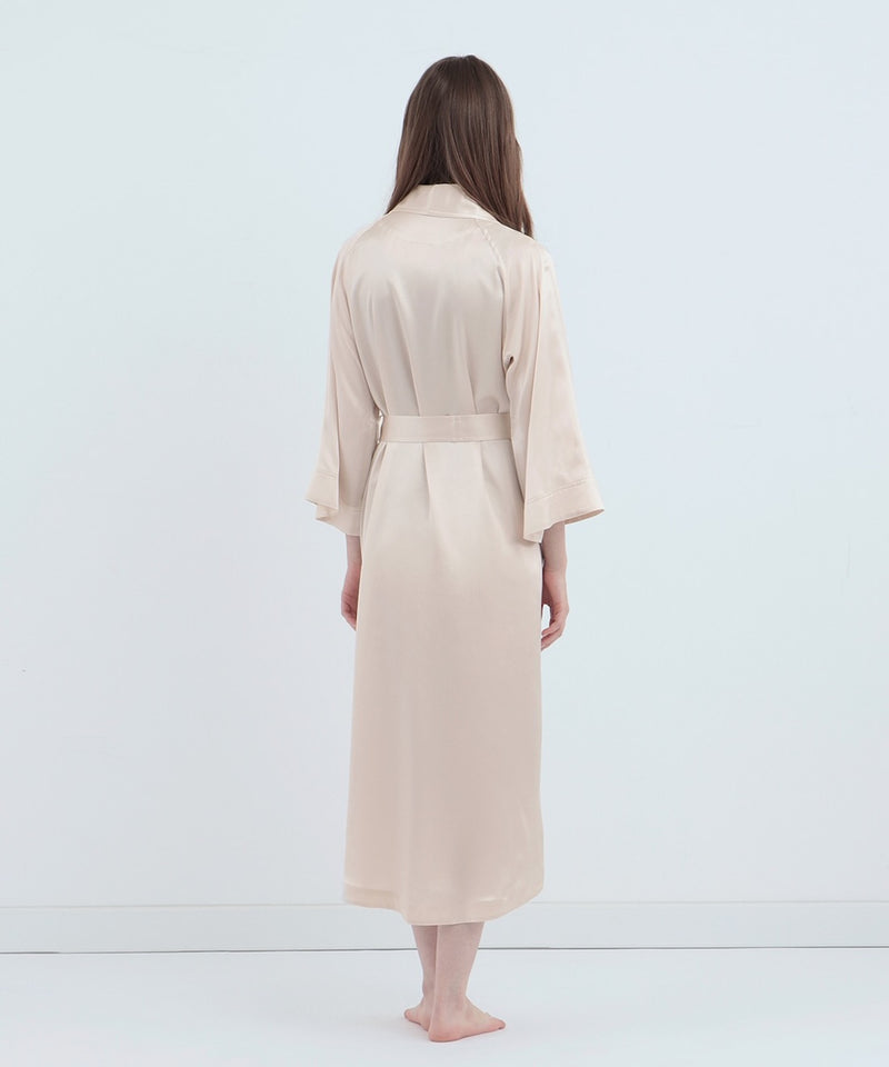 Silk is a special natural fiber that has been loved by people for its "skin beautifying and toning action. Its composition, rich in amino acids, is as close as possible to that of human skin, making it a skin-friendly material that even people with sensitive or atopic skin can wear. Foo Tokyo's silk gowns are made of 100% raw silk, the highest grade of silk available.